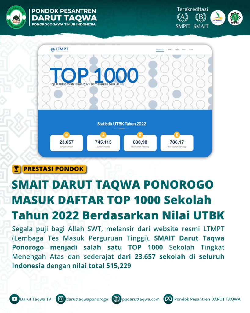 Masuk Daftar SMA Terbaik se-Ponorogo, SMAIT Darut Taqwa Ponorogo Mampu Bersaing dengan SMA Negeri di Kabupaten Ponorogo